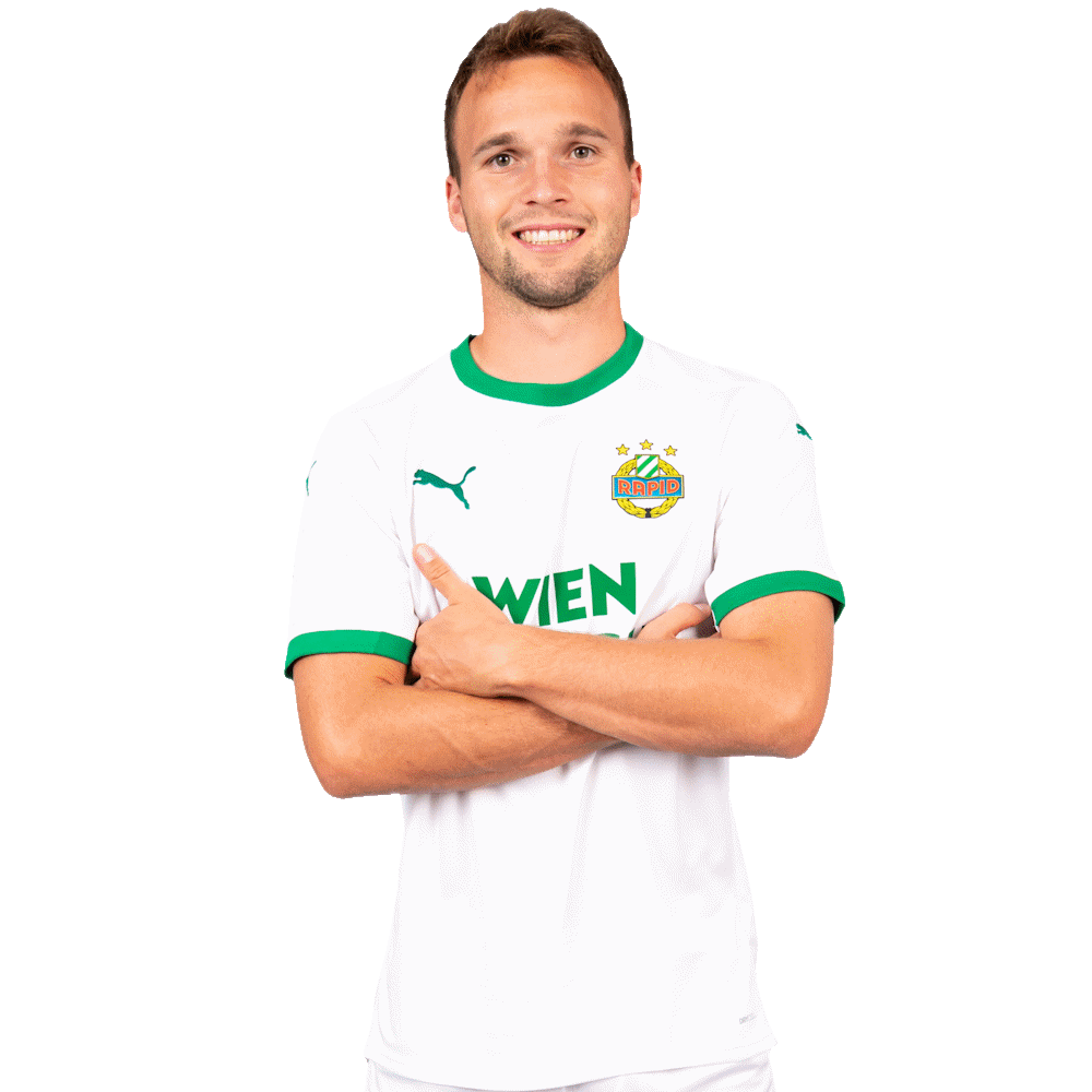 Grün-weiß gestreifter Schal mit dem Audruck "SPORTKLUB RAPID".