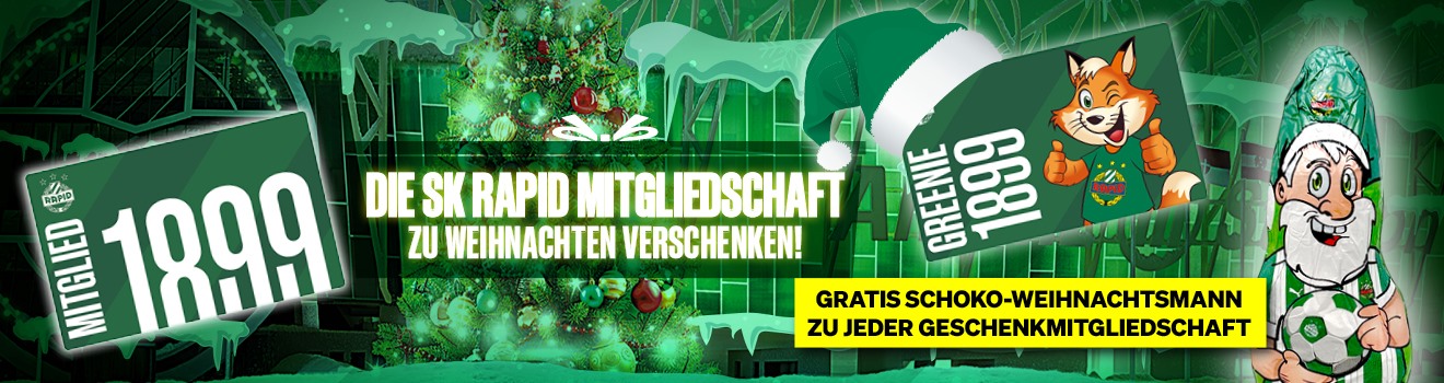Die Mitgliedschaft für alle Rapidfans ab 19 Jahren. Ideal als Geschenk mit unserer grün-weißen Geschenkkarte und einem Schoko-Weihnachtsmann!