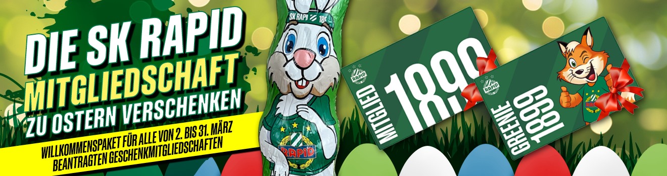 Die Mitgliedschaft für alle Rapidfans ab 19 Jahren. Ideal als Geschenk mit unserer grün-weißen Geschenkkarte und einem Schoko-Osterhasen!