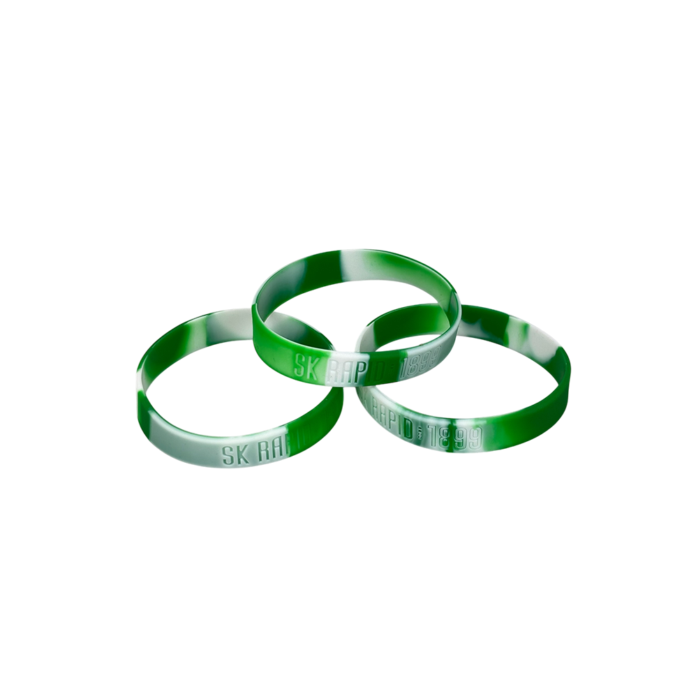 Grünes Gummiarmband mit eingeprägtem SK Rapid 1899. 202 x 12 mm.