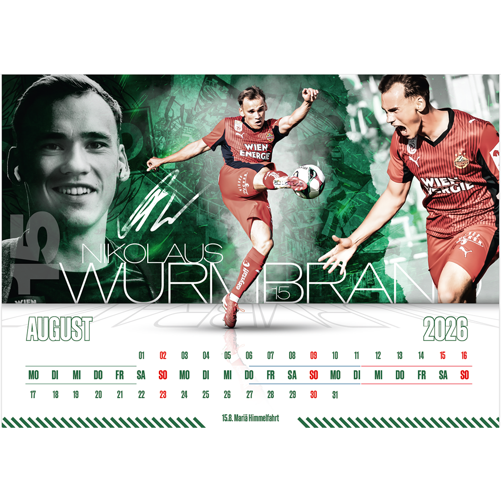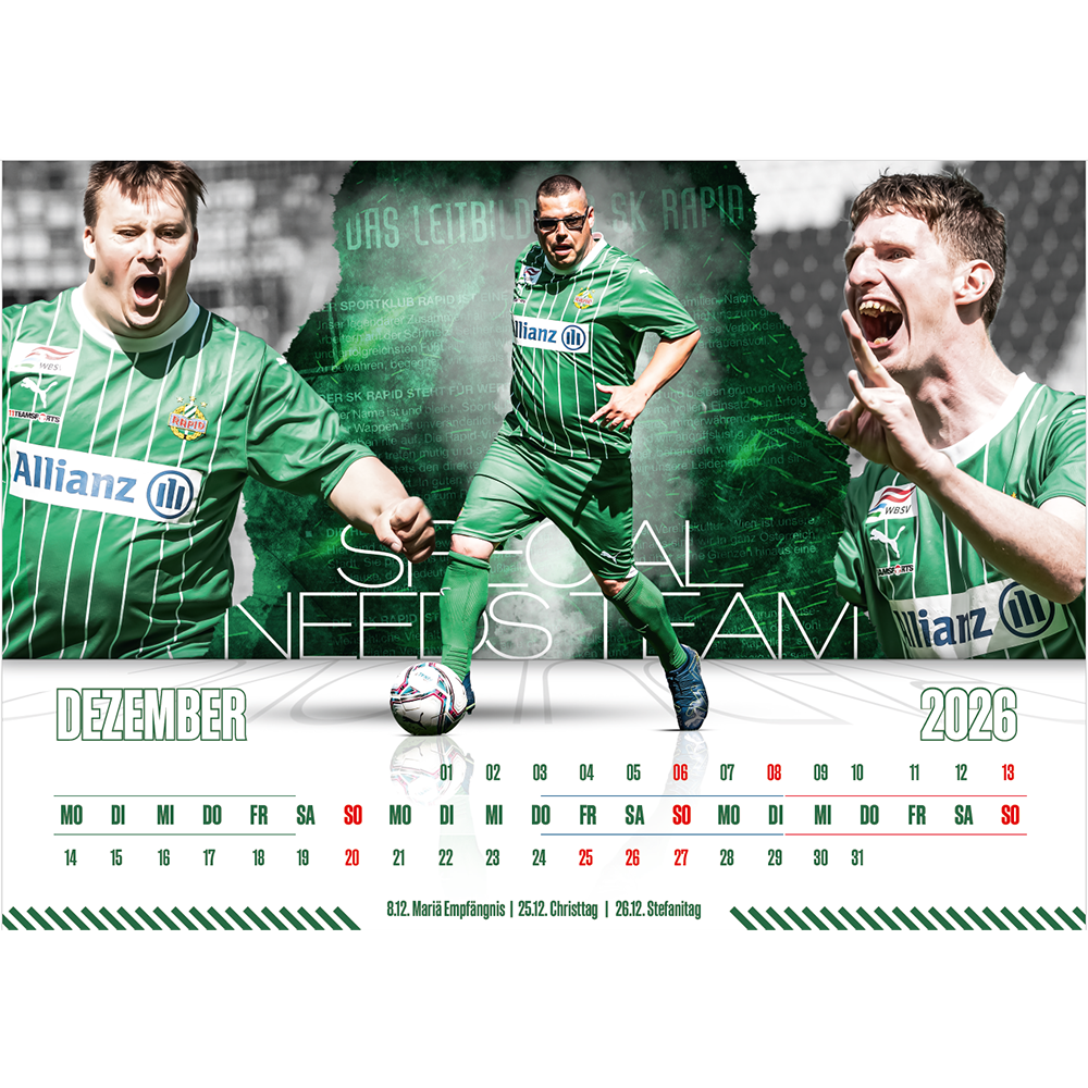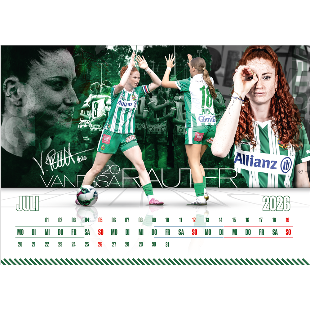 Starte voller Energie ins neue Jahr – mit dem offiziellen SK Rapid Jahreskalender 2026! Jeden Monat erwarten dich exklusive, emotionale und actiongeladene Motive unserer Spieler und Spielerinnen, die den Rapid-Geist perfekt einfangen.