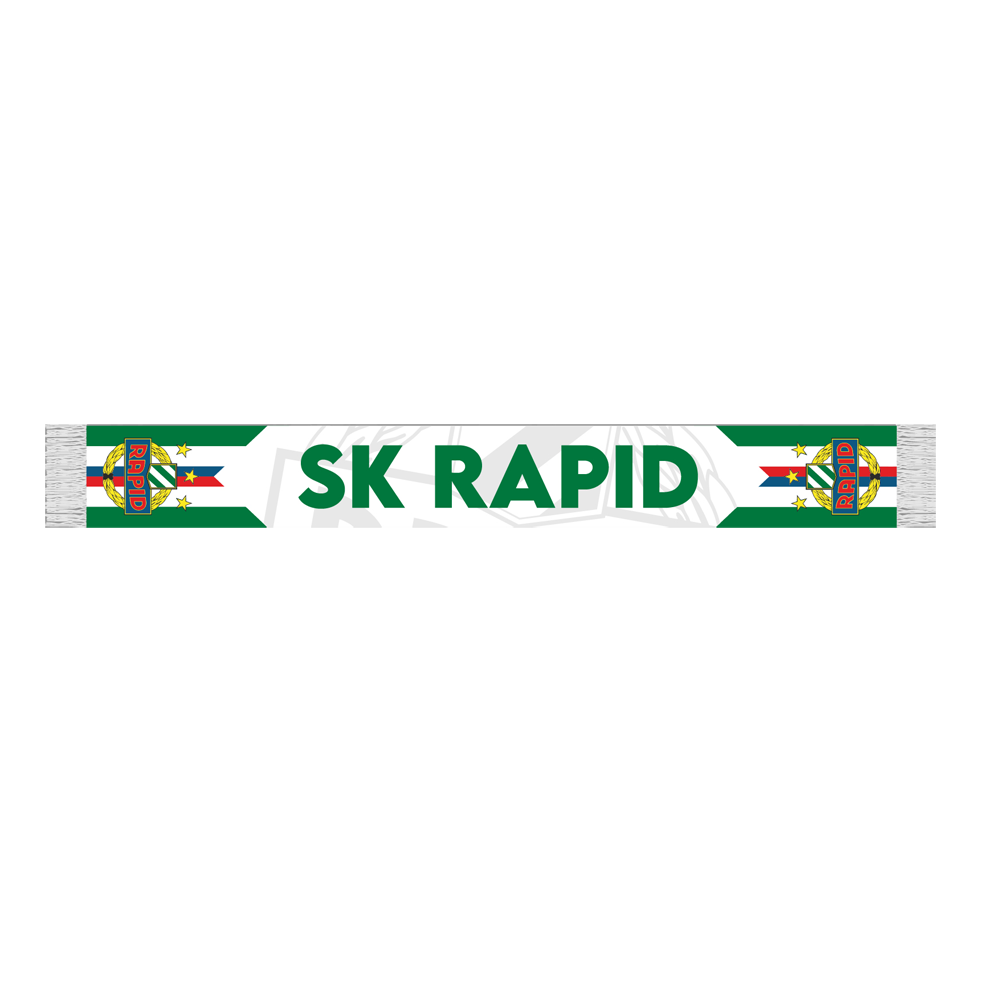 Weißer Seidenschal mit Rapid-Wappen und dem Wortlaut SK Rapid in grün auf beiden Seiten.