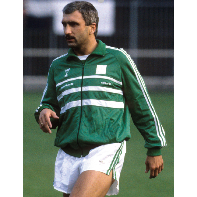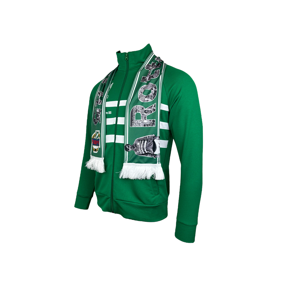 Detailverliebte Nachbildung der legendären SK Rapid Aufwärmjacke aus dem Europacupfinale 1984/85 gegen den Everton FC in Rotterdam lässt die Herzen aller Rapid-Fans höherschlagen. Mit viel Aufwand und Leidenschaft wurde dieses Stück Vereinsgeschichte neu interpretiert, um den Geist von Rotterdam 1985 nach 40 Jahren wieder lebendig werden zu lassen.
