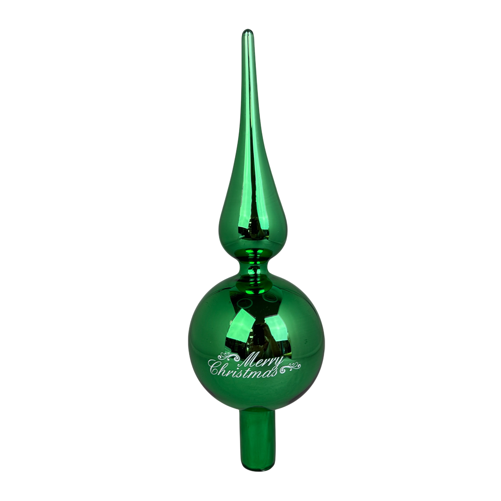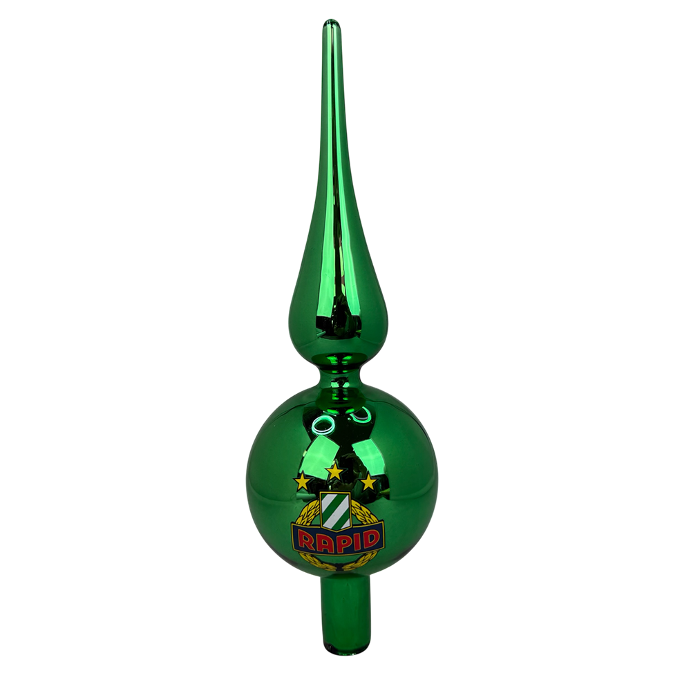Grüne Christbaum-Spitze mit Rapid-Wappen und weißem Schriftzug Merry Christmas.