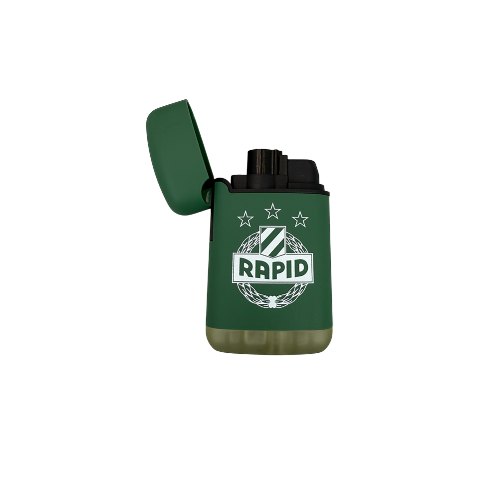 Entdecken Sie unser nachfüllbares Feuerzeug mit starker Jet-Flamme – die perfekte Begleitung für Ihre Outdoor-Abenteuer und den Alltag. Dieses hochwertige Feuerzeug in grün wurde mit weißem Rapid Wappen veredelt.