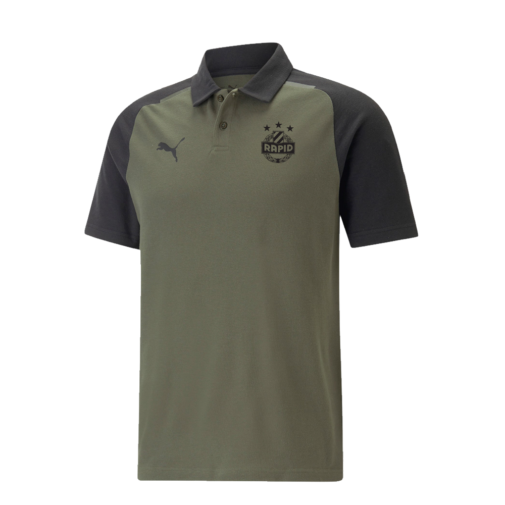Schwarz/Grünes stylisches Polo mit Rapid-Wappen.