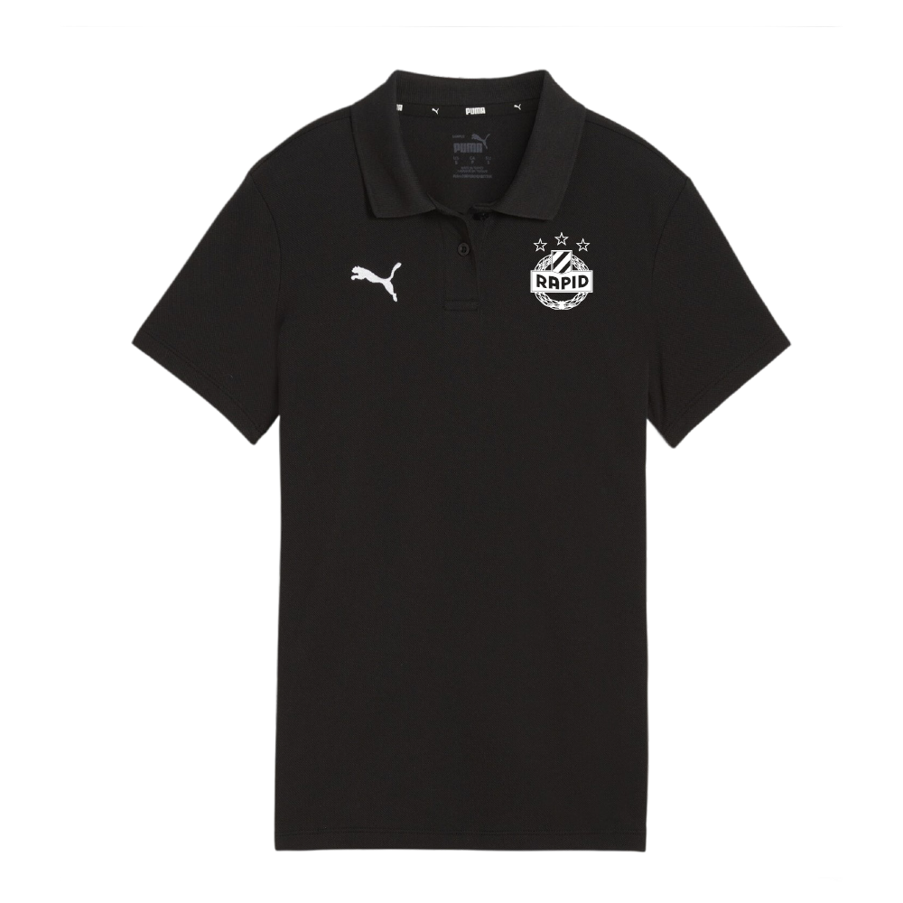 Schwarzes stylisches Polo mit Rapid-Wappen. Das hervorragende Oberklasse-Modell von Puma ist atmungsaktiv und super bequem, kurzärmelig und überzeugt mit modischem Kragen.