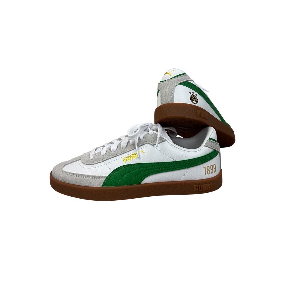 Sehr lässige weiß/grüne PUMA Sneaker, veredelt mit einem goldenen Rapid-Wappen und goldenem 1899.
