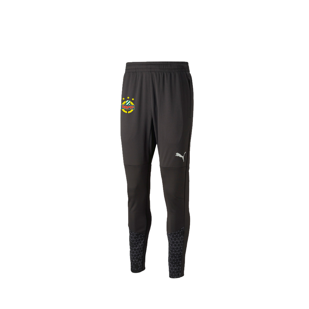 Schwarze Trainingshose mit Grafikprint an den Beinen und Rapid-Wappen, zwei Reißverschlusstaschen. Feuchtigkeitsableitende dryCell-Technologie sorgt dafür, dass du beim Training schweißfrei bleibst.