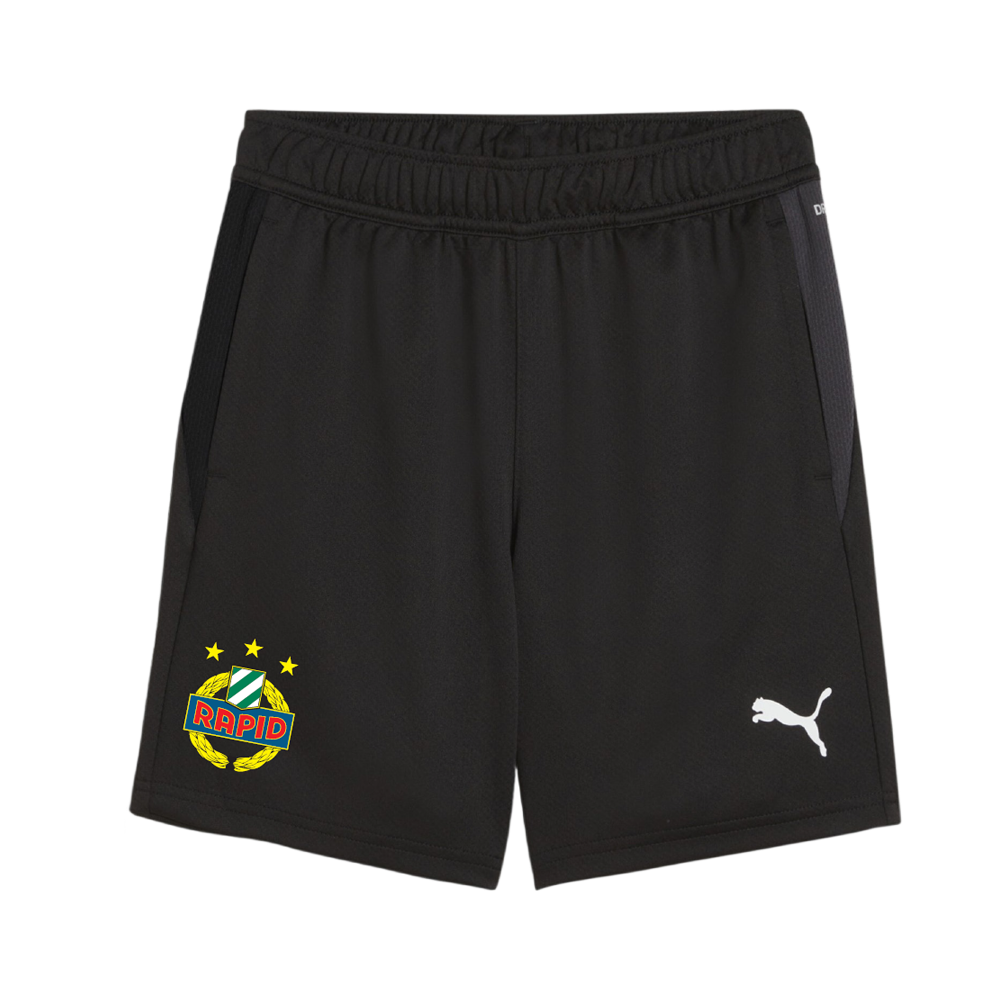 Schwarze Trainingsshort mit Rapid-Wappen und zwei Einschubtaschen. Die Short ist atmungsaktiv, super bequem und schweißableitend, außerdem bietet sie eine hohe Strapazierfähigkeit, damit ihr bestens für jede Trainingseinheit ausgestattet seid. Die änderbare Passform der Short wird durch einen Gummizug und einen Kordelzug geschaffen.