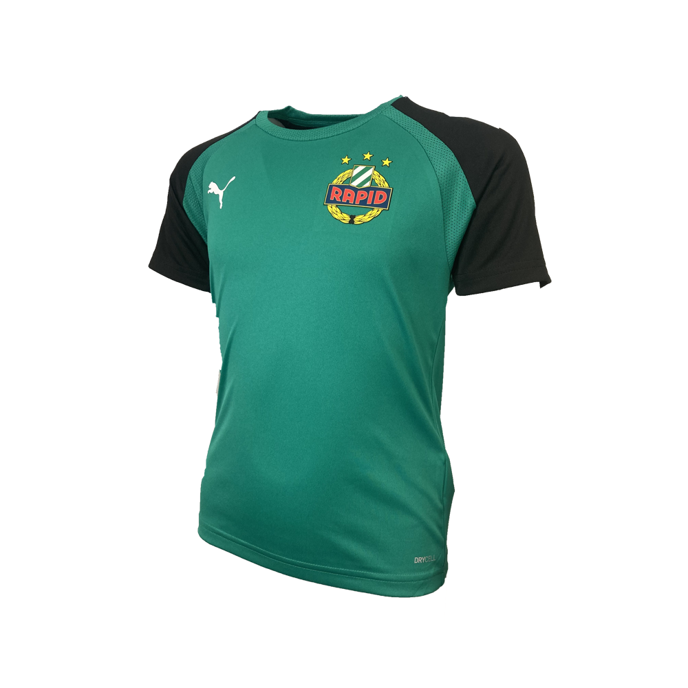 Grün,schwarzes Trainingsjersey mit Rapid-Wappen, Raglanärmel mit Mesh-Einsätzen für mehr Atmungsaktivität.