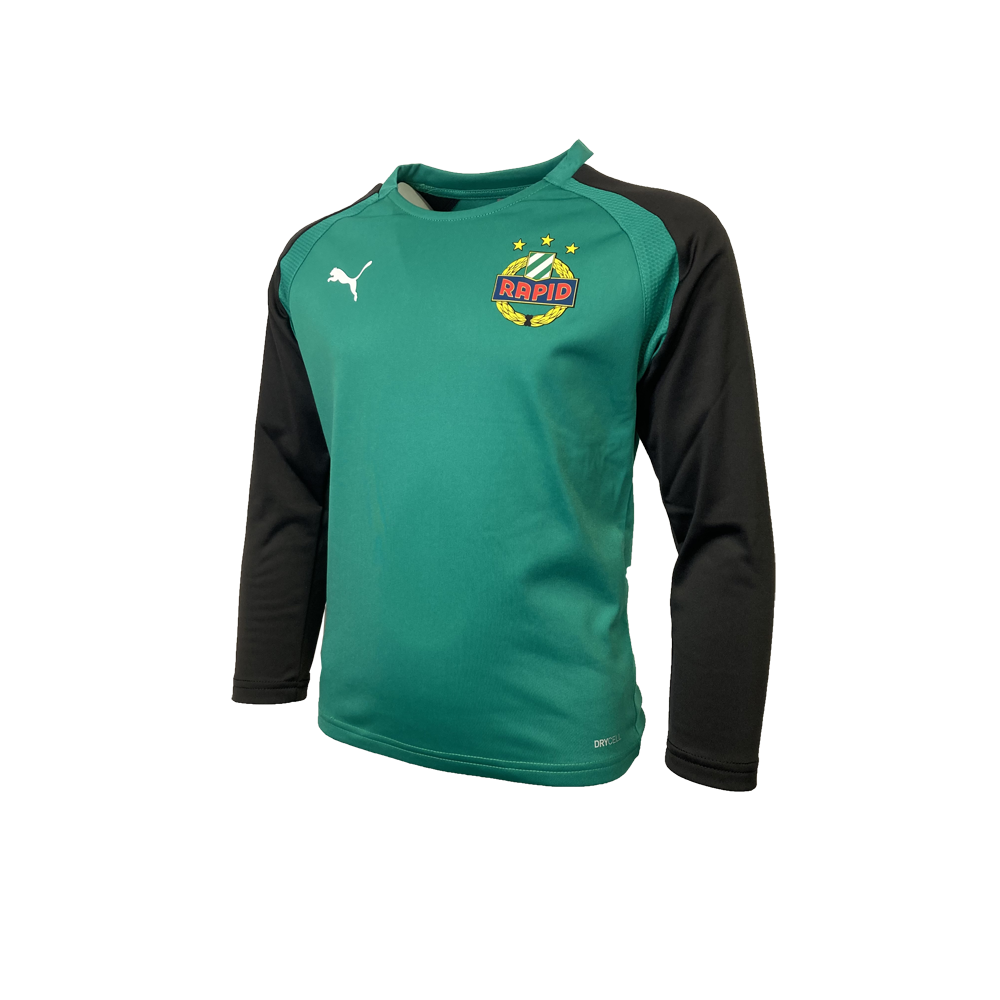 Grün/schwarzer Trainingssweater mit Rapid-Wappen.
