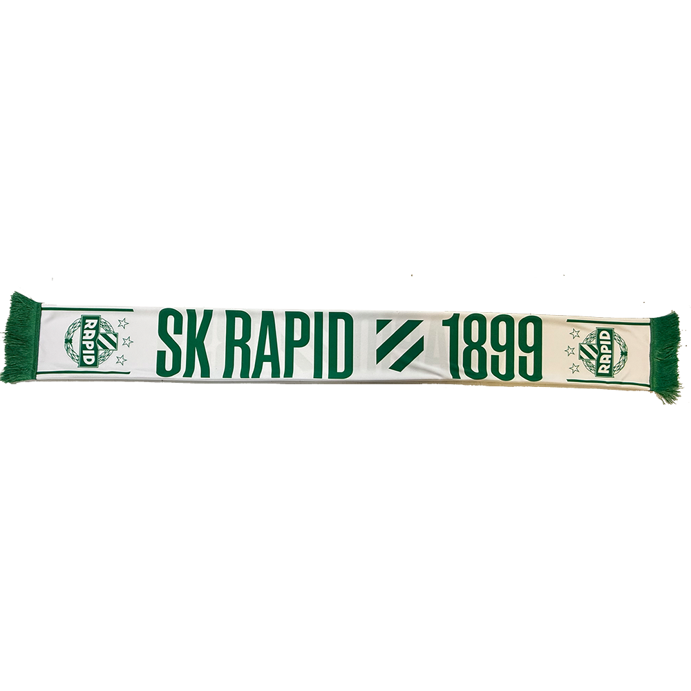 Grün/weißer Druckschal mit Rapid-Wappen und Aufdruck SK RAPID 1899.
