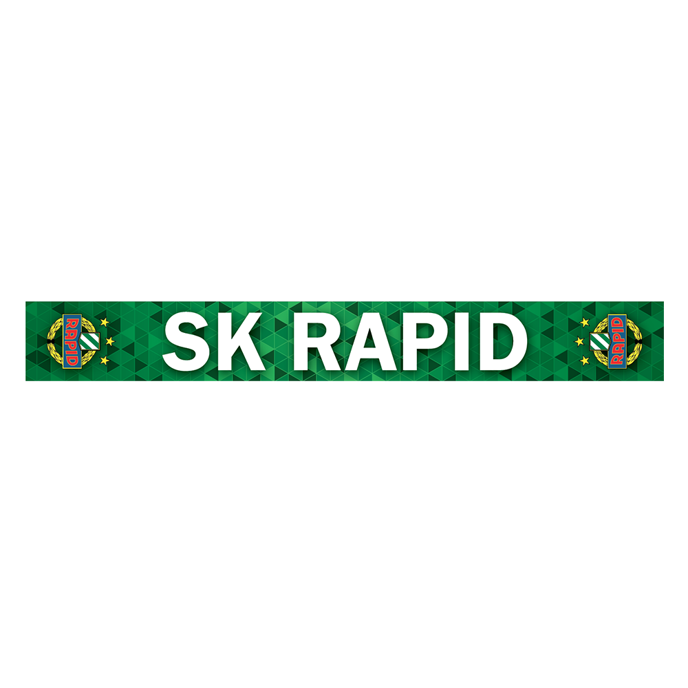 Druckschal mit Rapid-Wappen und Aufdruck SK RAPID auf grünem, diamant-ähnlichem Hintergrund.