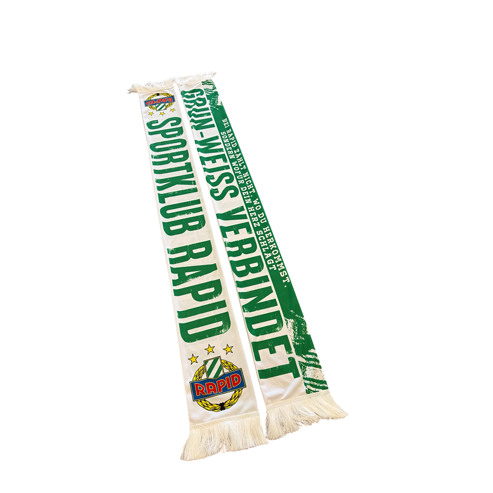 Druckschal mit Rapid-Wappen und Aufdruck SPORTKLUB RAPID auf der einen Seite und dem Aufdruck GRÜN-WEISS VERBINDET auf der Anderen.