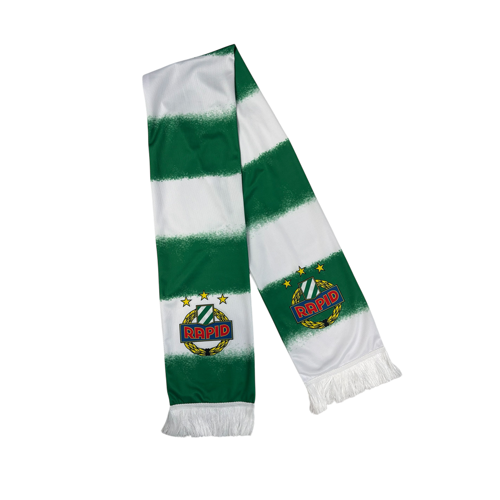 Druckschal mit Rapid-Wappen und einem grün-weißen Farbverlauf.
