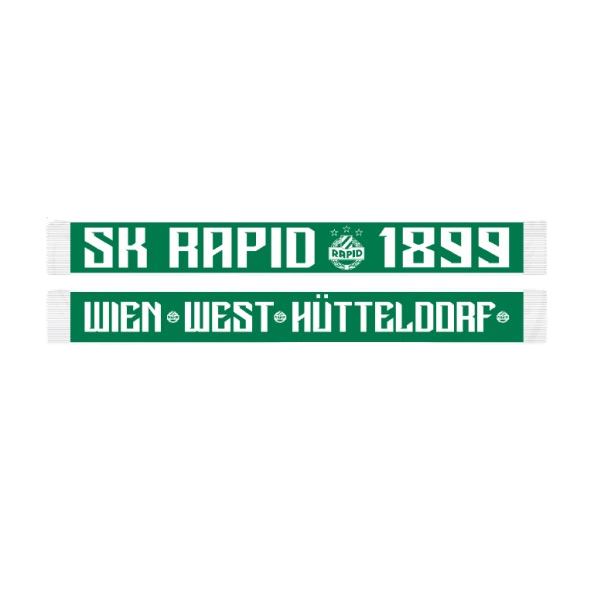 Druckschal mit Rapid-Wappen und Aufdruck SK RAPID 1899 auf der einen Seite und WIEN WEST HÜTTELDORF auf der Anderen.