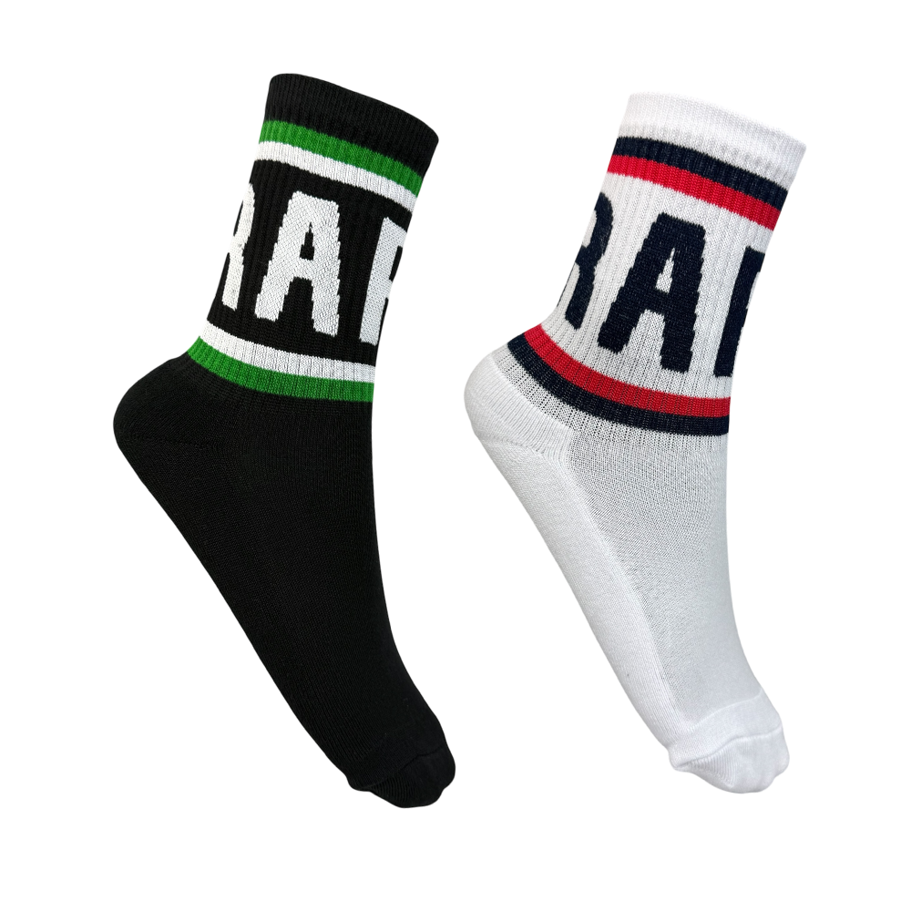 2er Set Sportsocken in den Farben weiß und schwarz, elastische Bündchen mit dem Schriftzug RAPID.