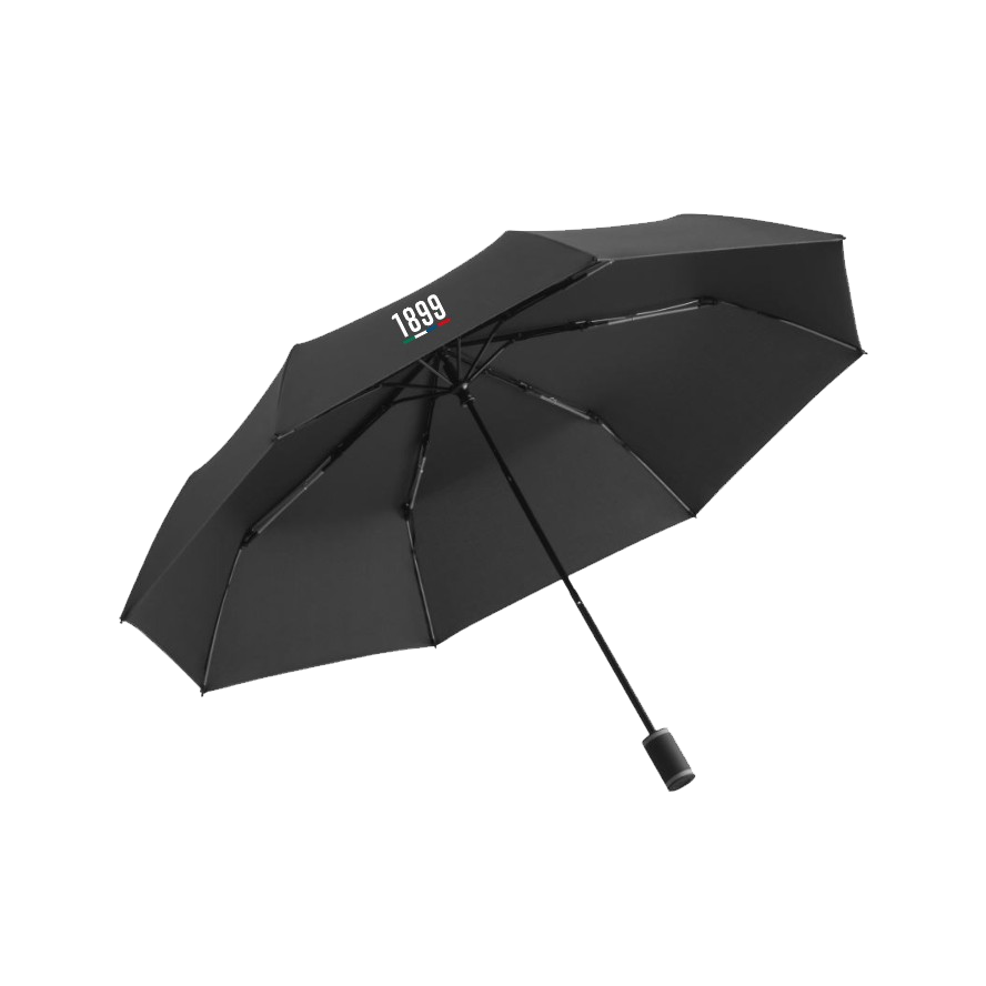 Schwarzer Taschenschirm mit Rapid-1899-Sujet. 3-teiliges Gestell, Soft-Touch-Griff, flexible Fiberglasschienen - einfache Handhabung durch Sicherheitsschieber, waterSAVE Materialien werden zur Schonung der Umwelt Wasser und Energie sparend produziert. Windproof-System für maximale Gestell-Flexibilität bei stärkeren Windböen.