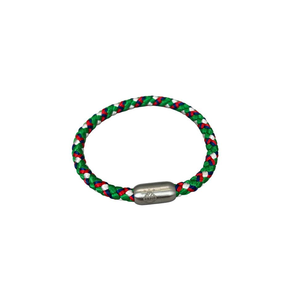 Vierfarbig gewebtes Armband mit Metallverschluss und graviertem Rapid-Wappen