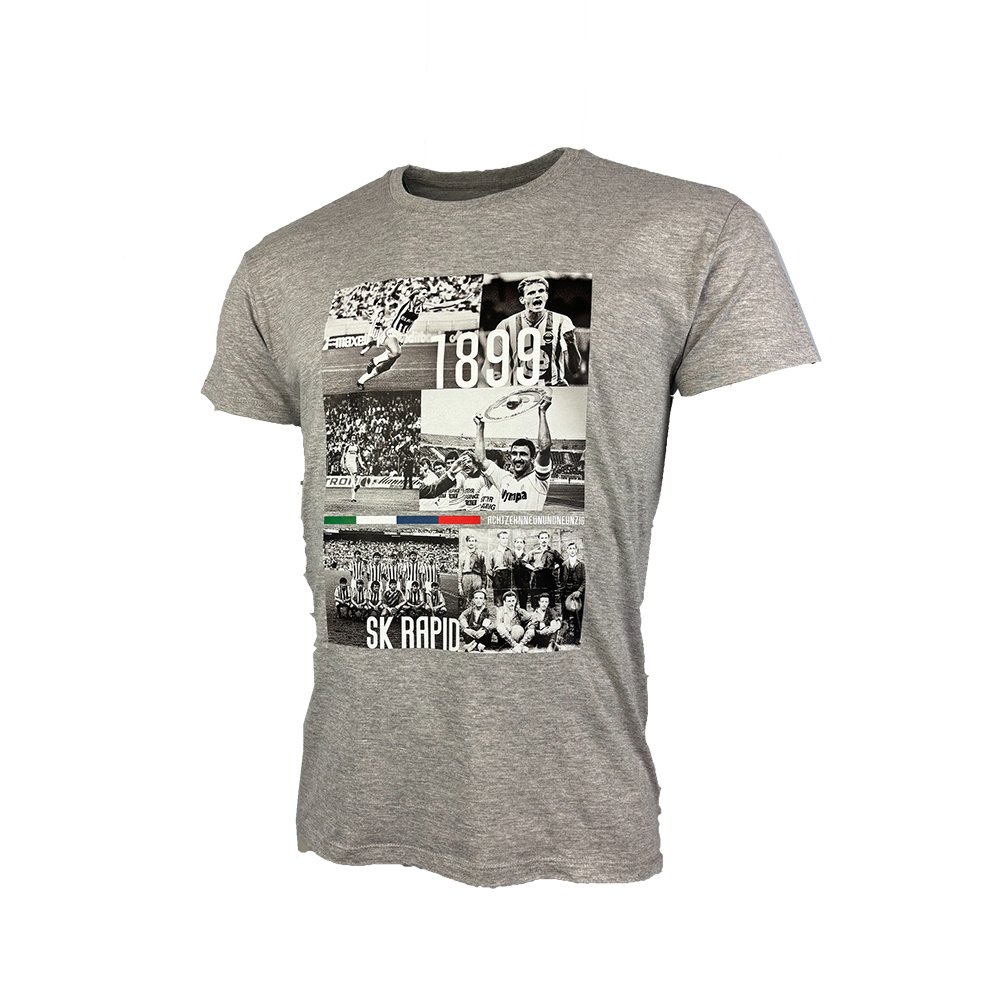Graues T-Shirt mit diveresen Impressionen aus den letzten 126 Jahren.